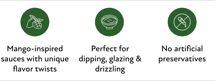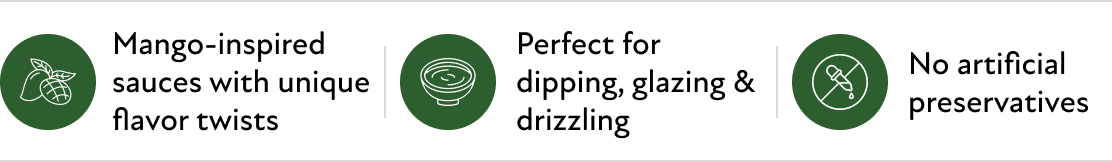 Mango Chilli Sauce 240gm: A fruity and spicy sauce that blends the sweetness of mango with chilli heat. Great for fritters, wraps, grilled vegetables and snacks.