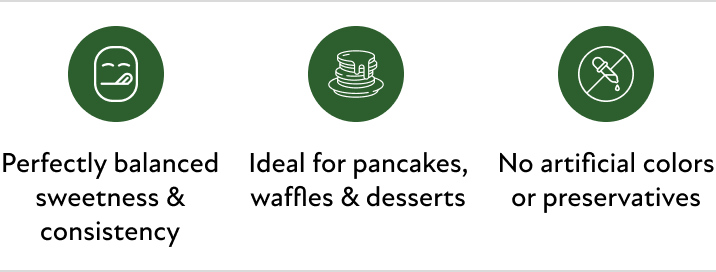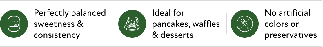 A rich, pourable syrup made with pure maple syrup crafted to give you that classic syrupy taste and texture in every drizzle.