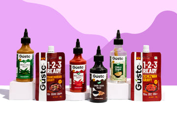 Make delicious Chinese food at home with Gusto Foods' Chinese Starter Kit! This pack has everything you need: Schezwan and Manchurian gravy pouches for tasty sauces, Soya Sauce for a rich flavor, Chilli Vinegar for a tangy kick, and Red and Green Chilli Sauces for a bit of heat. Perfect for anyone who loves cooking and trying new flavors, this kit makes it easy to enjoy Chinese dishes anytime.